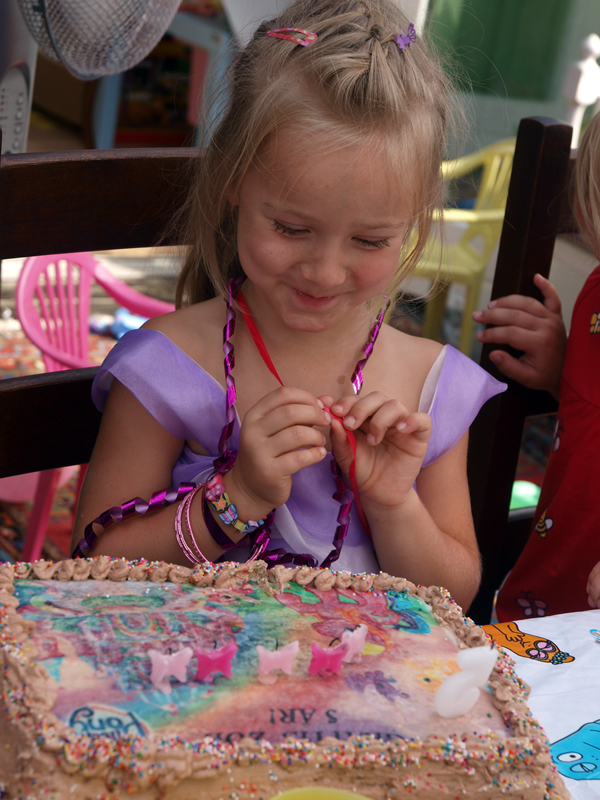 we woke the birthday girl up with singing and presents and of course ribbons and pink balloons.